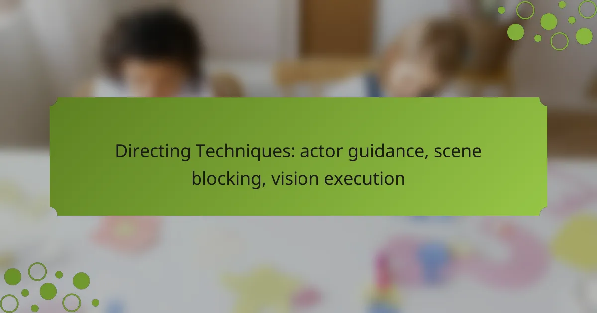Directing techniques are essential for guiding actors, blocking scenes, and executing a cohesive vision. Effective communication and trust-building with actors enhance their performance, while strategic scene blocking enriches storytelling through thoughtful spatial arrangements. Ultimately, a director’s ability to articulate their vision and collaborate with the cast and crew is crucial for bringing the artistic intent to life on screen.