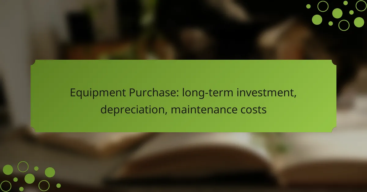 When considering equipment purchases, businesses must focus on long-term investment strategies that encompass depreciation and maintenance costs. By evaluating these factors, companies can enhance their return on investment and mitigate financial risks. Understanding how depreciation affects asset value and planning for maintenance expenses are essential for effective budgeting and ensuring equipment longevity.