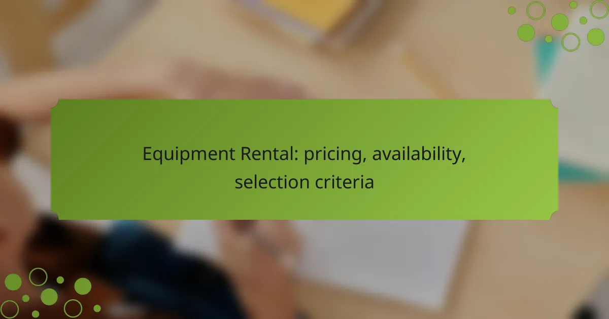 When renting equipment in Australia, it’s essential to understand the pricing, availability, and selection criteria to make informed decisions. Rental costs can vary widely depending on the type of equipment and rental duration, with smaller items typically starting in the low tens of AUD per day. To find available options, utilize online platforms and local rental shops that provide up-to-date stock information. Additionally, consider factors such as equipment specifications and insurance options to ensure you select the right equipment for your needs.