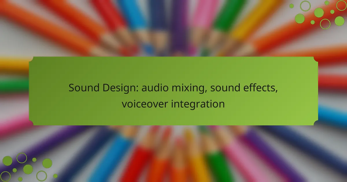 Sound design is a crucial aspect of audio production that encompasses audio mixing, sound effects creation, and voiceover integration. Effective audio mixing balances levels and frequencies to craft a seamless auditory experience, while high-quality sound effects enhance the richness and authenticity of the project. Additionally, integrating voiceovers requires careful attention to clarity and cohesion with other audio elements, ensuring a polished final product.